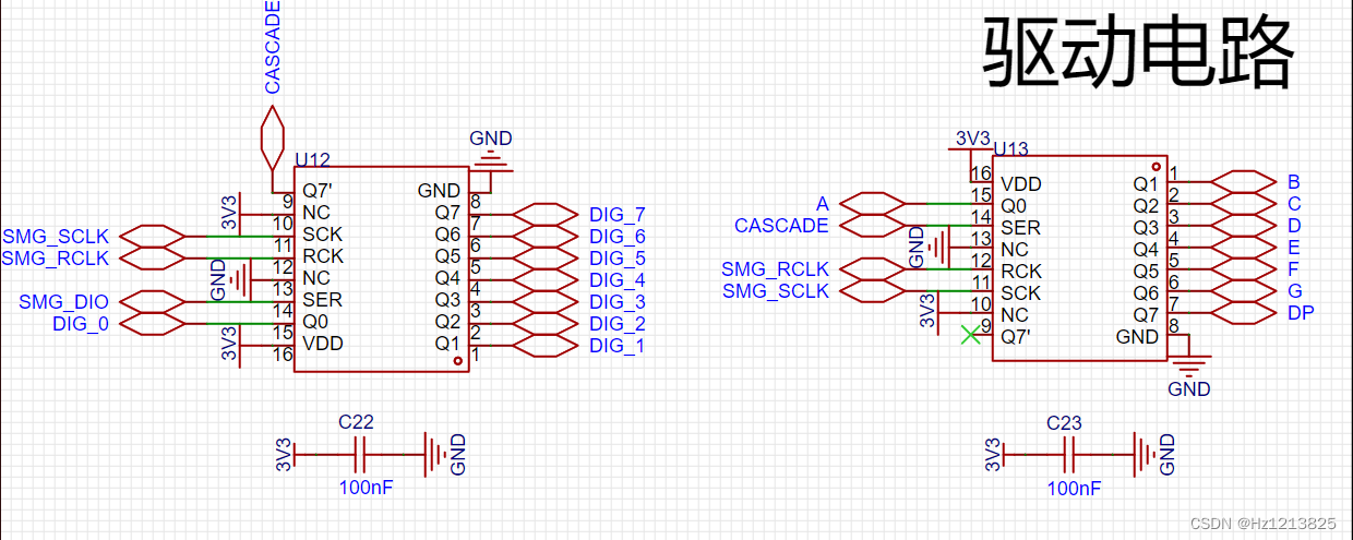 注意一定得是D,74HC595A是开漏输出,需要额外加上拉电阻