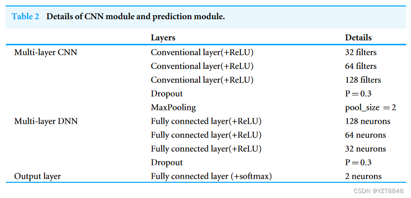 其中wv∈Ru×2表示软磁函数的重量矩阵。表2列出了多层DNN和输出层的详细信息。
