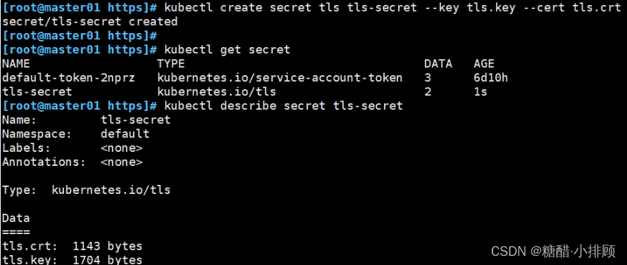 kubectl create secret tls tls-secret --key tls.key --cert tls.crt