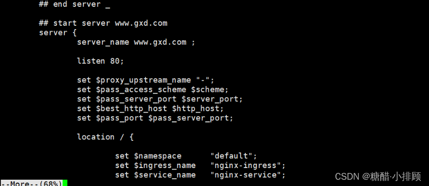 - 然后读取它,按照自定义的规则,规则就是写明了哪个域名对应哪个service,生成一段nginx配置