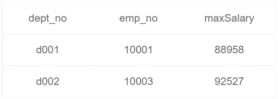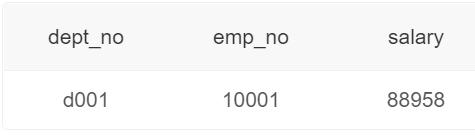 Get all non manager Employee salary , give dept_no、emp_no as well as salary, Output of the above example :