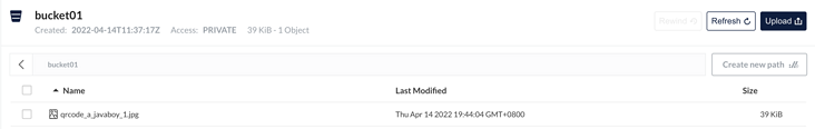 设置完成后,接下来我们就可以往这个桶中上传资源了,如下图: