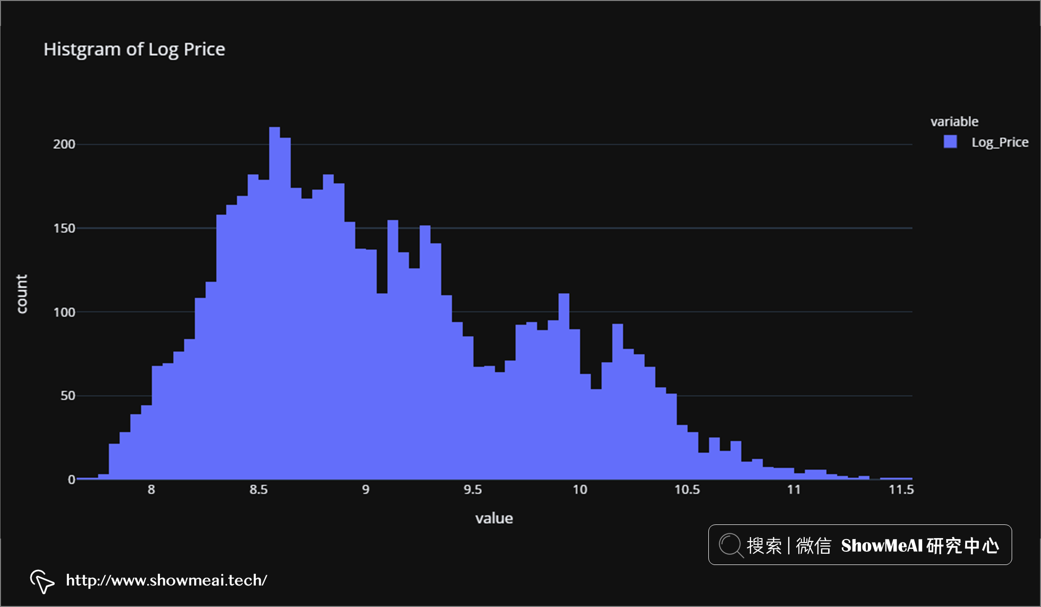 大家可以明显看到,经过log变换后的数据分布,更加接近正态分布。