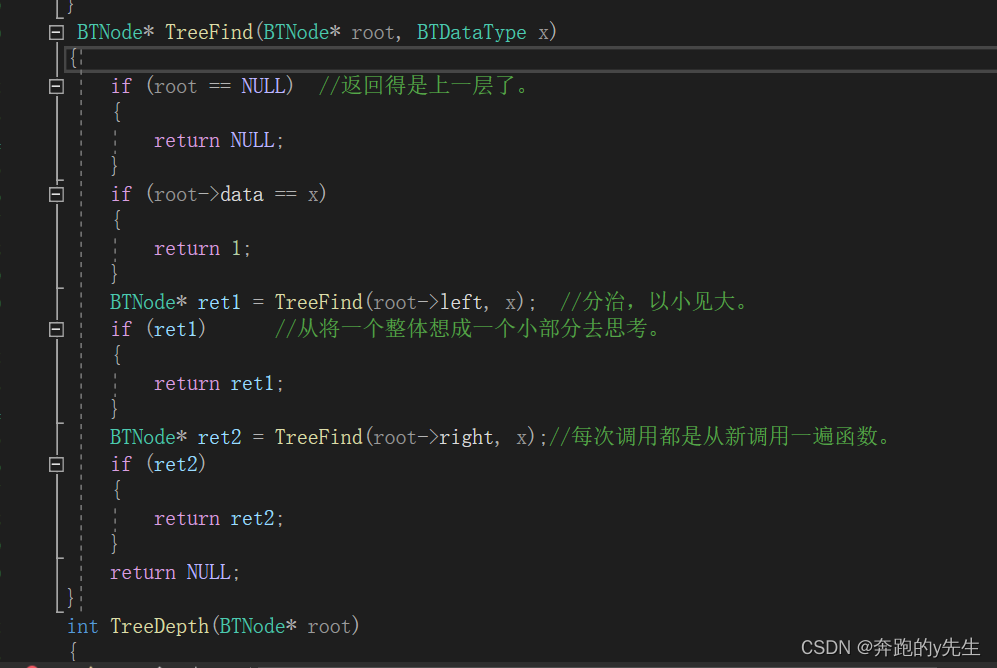 2:使用最小数的单元,或者其他限制条件来确定数的返回。将一个大树看作一棵树来进行分治。