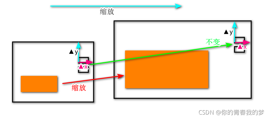 With this picture, we know that as long as we guarantee Δx,Δy Keeping the same can make the position of the button control change with fig Keep the zoom changes consistent