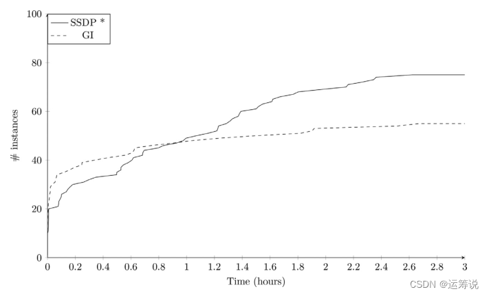 最后,本文将实验结果与Gschwind和Irnich(2017)的结果以及使用通用商业整数线性规划求解器获得的结果进行了比较。结果表明,Gschwind和Irnich(2017)的方法在较短的计算时间内更有效,而SSDP在较长的计算时间(>1小时)方面表现优异;与通用MILP求解器的比较得知,在三小时后解决的实例中,SSDP显示出最佳性能。但对于大多数实例,如编号为1到55,SSDP花费的时间可能较长。