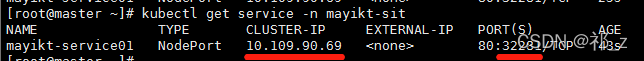 给mayikt-sit命名空间设置service, service分配的端口为32232