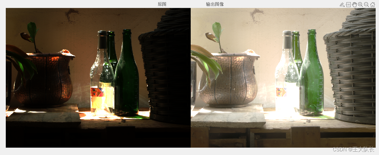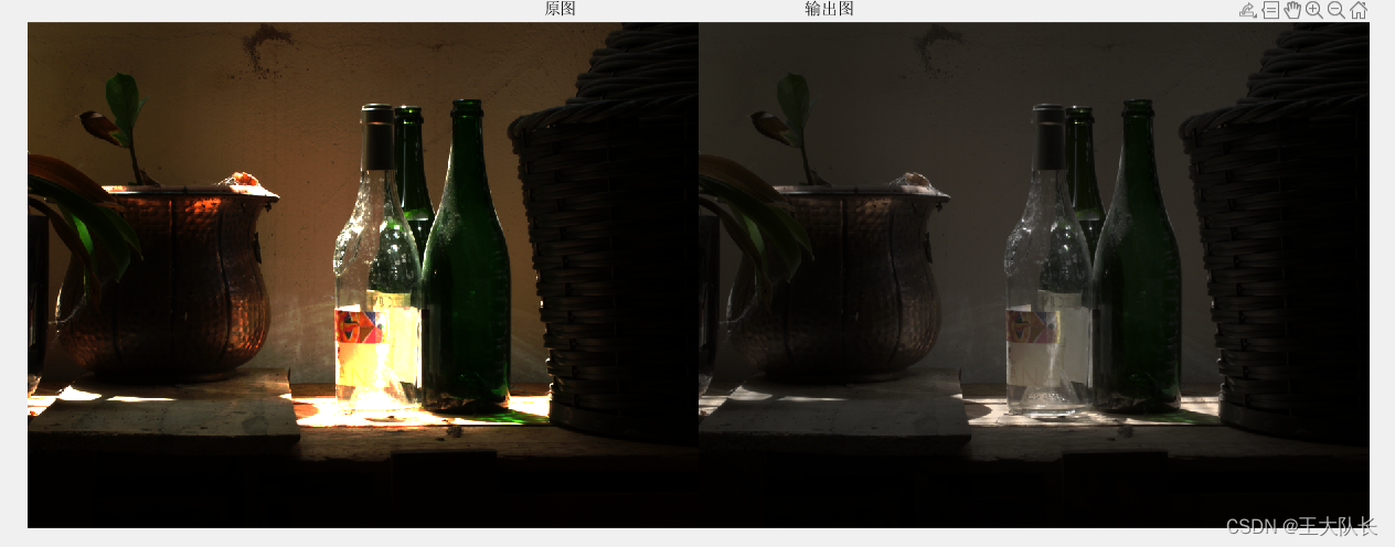 貌似区别不大。通过上面的代码我们就完成了上文所说的通常的两个步骤:改变亮度和颜色校正。当然在这里我们改变亮度的方式并不好所以得到的结果比较暗,在后文给出了更好的方法和结果。