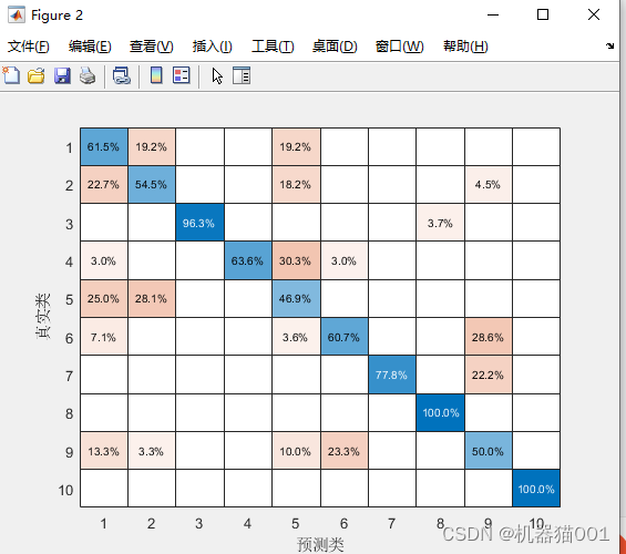 本文针对十分类轴承故障诊断问题,采用四种经典方法2DCNN、1DCNN、BP、SVM进行建模,并对比最终结果。