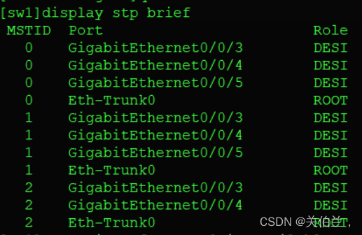 [sw1-GigabitEthernet0/0/2]eth-trunk 0