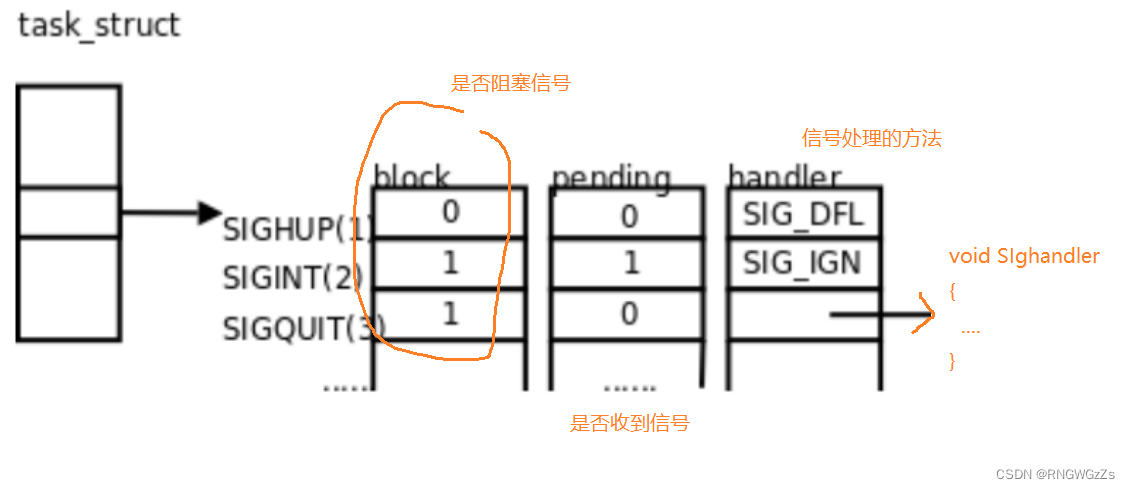 ⑤pending:是否收到信号 block:信号是否被阻塞