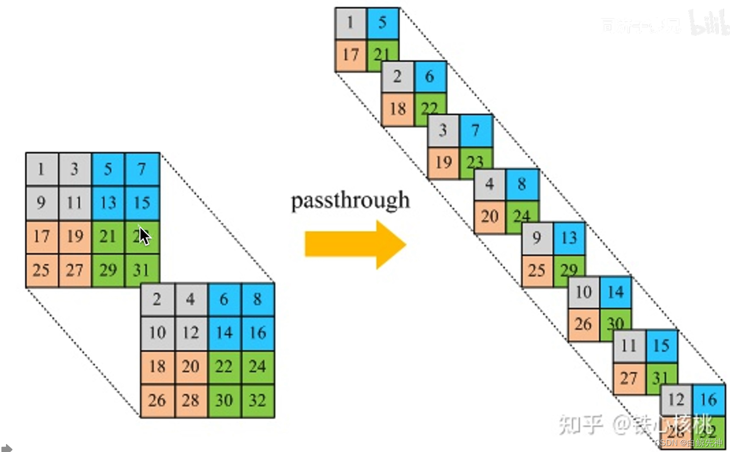 通过Passthrough 把26 * 26 * 512的特征图叠加成13 * 13 * 2048的特征图,与原生的深层特征图相连接。