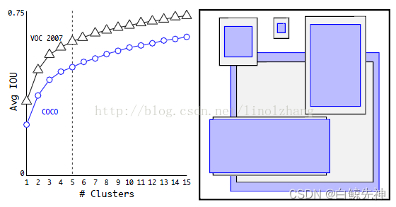 作者在 VOC和COCO上通过Ground Truth进行聚类统计(采用K-means算法),得到如下两个有用信息: