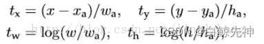 这里贴一下Faster R-CNN里面的公式,和上面这个公式将减号变成加号是一致的。