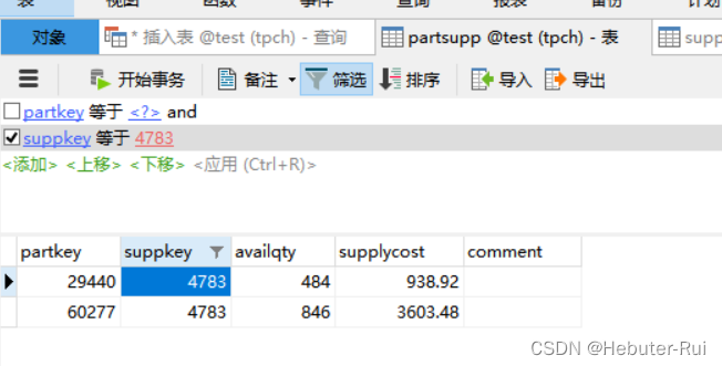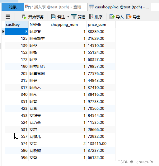 in the light of tpch Database or self built database test Design single line insert 、 Batch insert 、 Modify and delete data , Understand and master insert、delete and update The various components of the grammatical structure , Combined nesting SQL Subquery , Design several different forms of statements , And debugging passed .