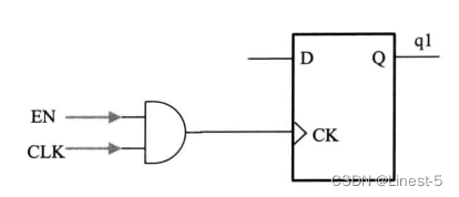 不含锁存器的门控时钟使用一个“与”门或“或”门实现(取决于触发器使用哪个边沿),如下图一所示。