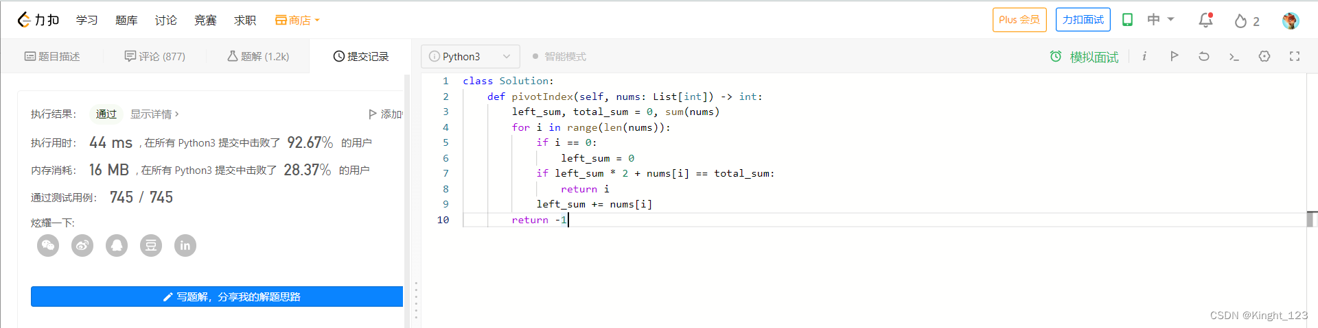LeetCode:724. 寻找数组的中心下标————简单
