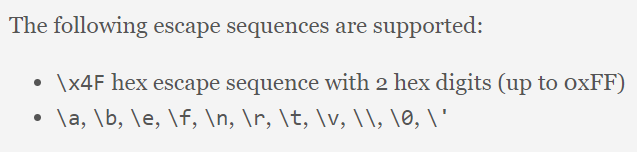 let hex_escaped_big_a: U8 = '\x41' // 65