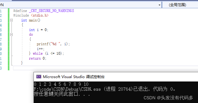 do...while A loop is to execute the statements in the loop first , And then judge the conditions , If the condition is true , Then continue to execute the loop , Otherwise jump out of the loop