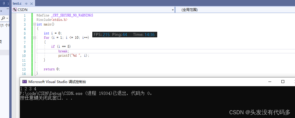 here 4 The following cursor stops flashing , Explain that the program has been executed , When i==5 when , perform break, The program will jump directly out of the loop