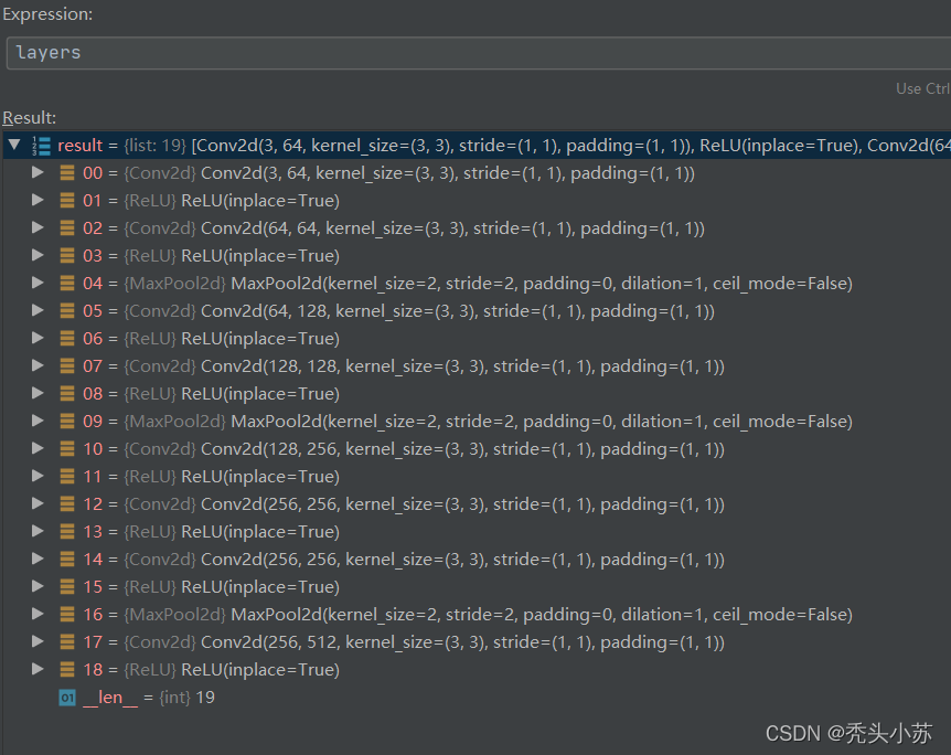Through the above procedure , We can take a look at the results layers Part of the internal structure 【 Only the first few layers are selected 】, As shown in the figure below :