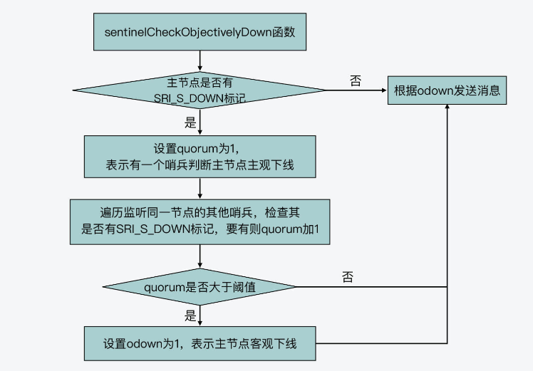 当进入TILT模式后,在收到其他实例的”INFO”命令回复后的回调函数sentinelRefreshInstanceInfo中,仅将收到的信息保存下来,而后续涉及到主从角色变化、故障转移流程等,都不再处理;而且当收到其他哨兵发来的,用于询问某主节点是否下线的"is-master-down-by-addr"命令时,一律回复“未下线”,因为处于TILT模式下的哨兵的判断,已经不可信了。