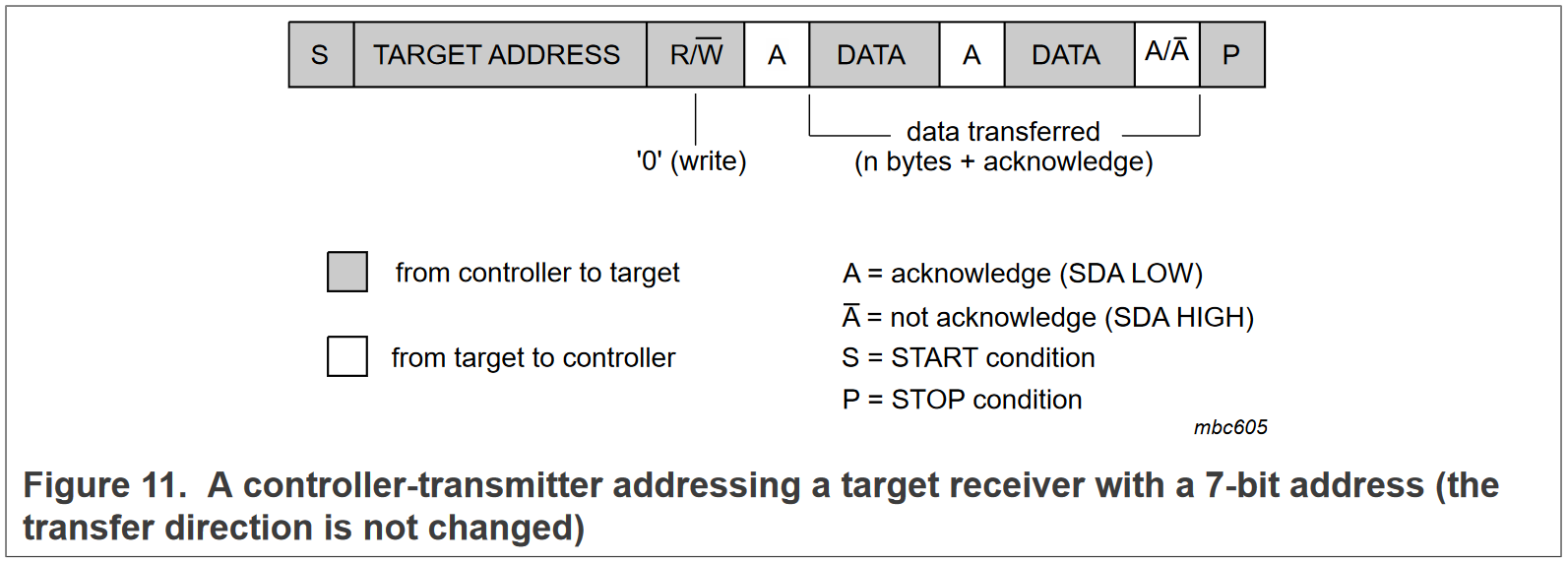 当 SCL(时钟信号线) 为高电平时,SDA 下降沿表示为起始信号,SDA 上升沿表示停止信号。
