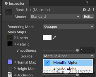 记得standard shader的smoothness下面的source那选择metallic alpha而不是albedo alpha。之后将新metallic图片代替原来的metallic图片即可。