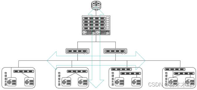 Tor( Cabinet top access ) Put the switch on the top of the cabinet , Put the server under the cabinet and connect it with the network cable