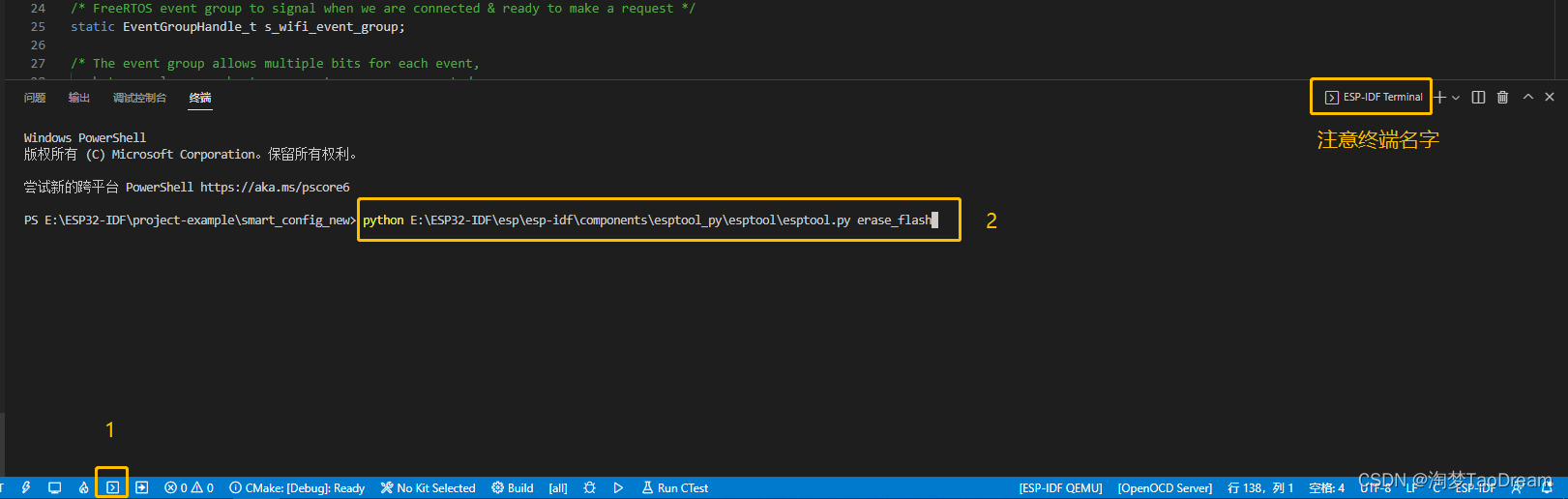 在VSCODE中打开终端工具ESP-IDF Terminal,然后输入以下命令,然后按Enter。
