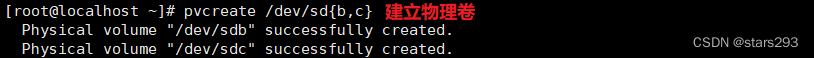 [[email protected] ~]# pvcreate /dev/sd{b,c}