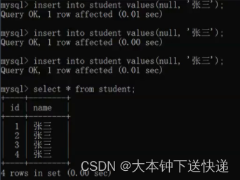 3.常与 auto_increment 搭配使用,可自动增加值,也支持手动分配.