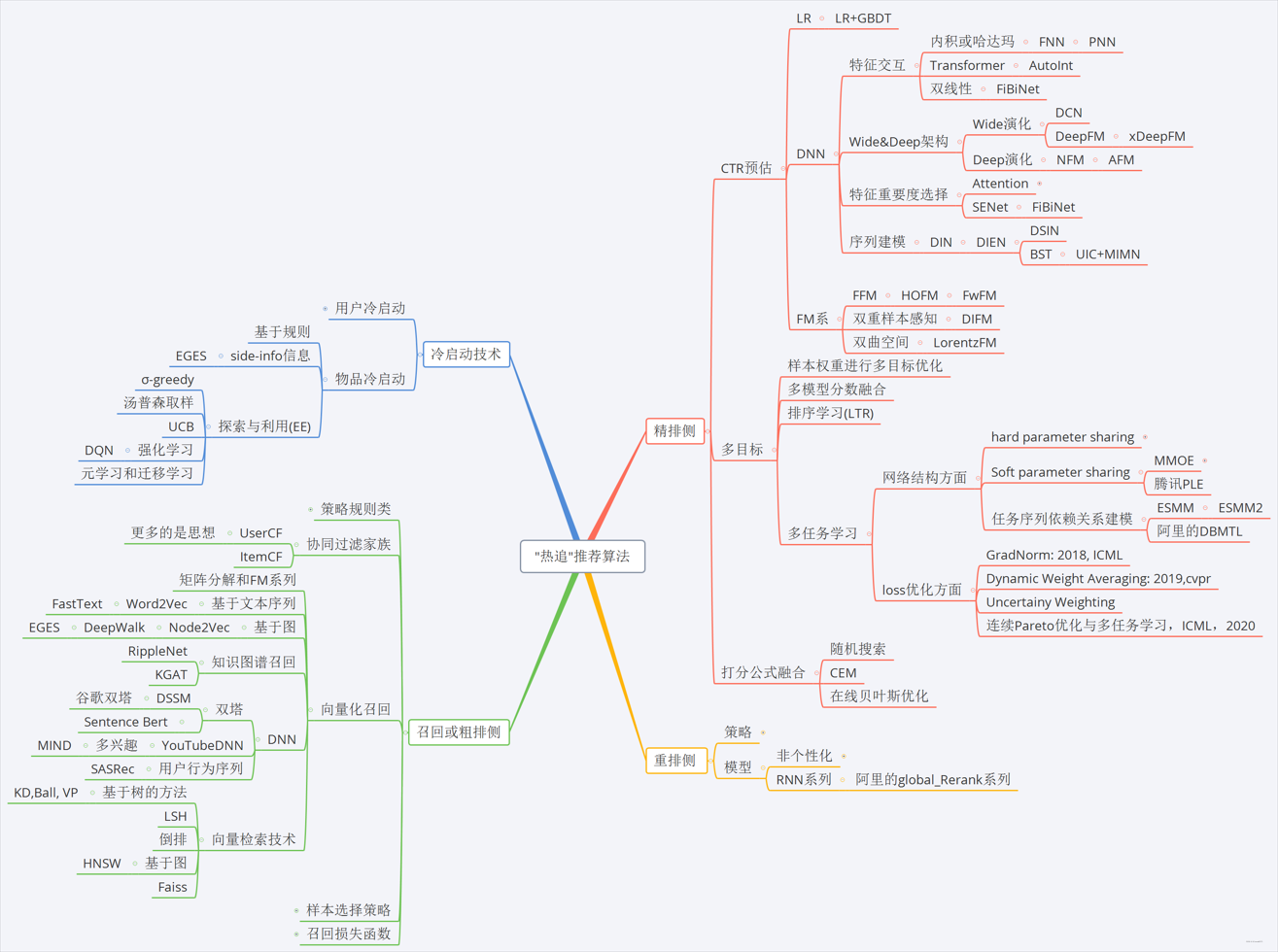这里面的每个点几乎都对应着一篇paper,正好符合"热追"推荐算法模型的整理思路,目前的打算是先把这里面最经典的一些整理了,然后零碎知识点进行补充。