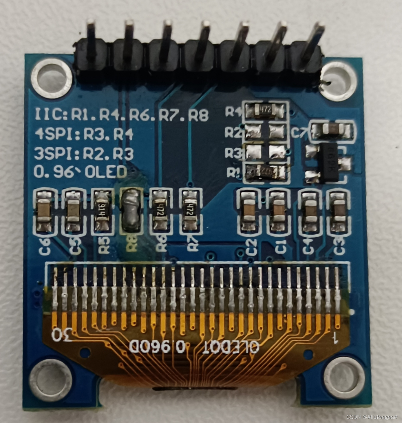 常见的OLED屏幕都是如上图,只有4个引脚,但我这里使用的是7脚的OLED屏,它不仅支持IIC通信,还支持4线SPI、3线SPI。如图