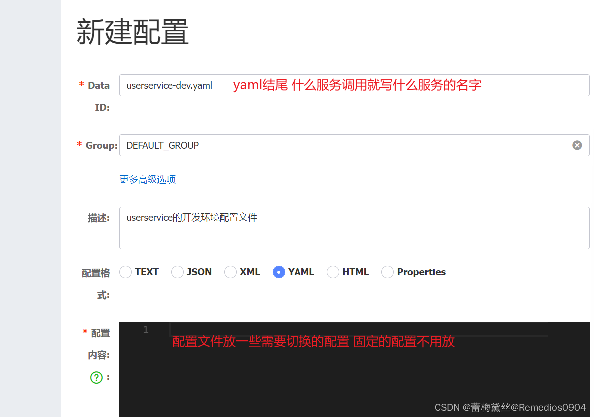 [spring.application.name]-[spring.profiles.active].yaml,例如:userservice-dev.yaml[spring.application.name].yaml,例如:userservice.yaml