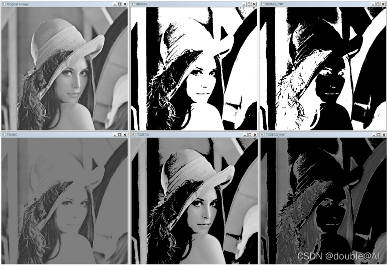 retval, dst = cv2.threshold(src, thresh, maxval, thresholdType)• dst:结果图像
