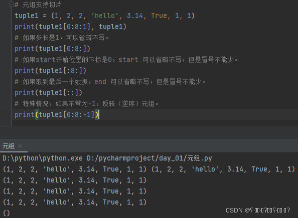 作用:使用切片操作,可以一次性获取元组中的多个数据。