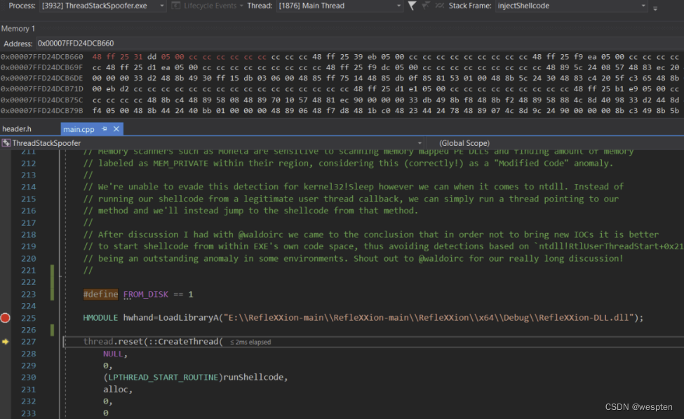 该项目是基于threadstackspoofer项目的加强版,在sleep函数执行的时候在对shellcode内存的修改属性且解密。可以一定程度上绕过edr的内存扫描。原理就是beacon线程在执行sleep函数的时候,会自动将自己的内存加密并修改属性为不可执行,再执行正常的sleep函数。执行成功后恢复shellcode并使之可以执行,等待下一次连接重复上述操作。在sleep函数真正执行的过程中,shellcode为不可执行属性可以绕过edr的检查。