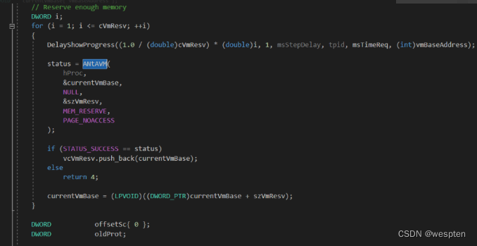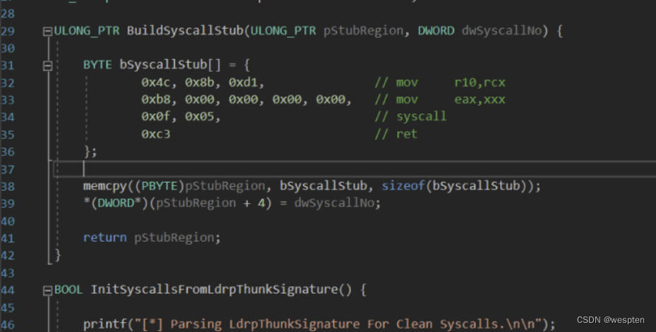 为此,我们添加WINAPI调用的函数签名,获得WINAPI在ntdll.dll中的地址,然后创建一个指向该地址的函数指针: