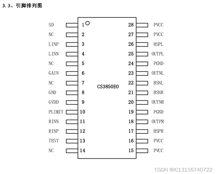 CS3850EO Is a typical output power of 40W Stereo D Class audio power amplifier circuit , Suitable for pull rod speakers 、 Advanced desktop audio and other occasions .