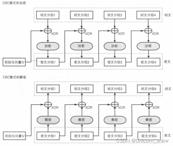 (3)存在密文扩展(明文填充带来的扩展和IV传输的扩展);(IV长度一般与分组长度相同)