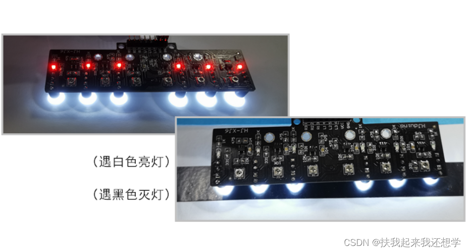 灰度模块,如果想了解很多的可以到网上直接输入关键词灰度来进行了解。我这边就简简单单讲讲我的了解。灰度,可以寻黑线也可以寻其他颜色的线(比如2021年的送药小车的红线,哈哈哈哈因为我们学校实训就是这个循迹红线)。循迹黑线,你还可以选择:红外。但是红外效果往往没得灰度效果好。循迹其他颜色的,还可以选择:摄像头(比如OPENMV),这个在我电赛前就写好了,但是!!当时没有调试场地,自己用电工胶布粗略的画了一些线段(这时候循迹是挺好的),所以导致在比赛的第一天我用openmv的时候,摄像头收到光照或者阴影影响太大,无法很好的循迹,所以转战灰度。