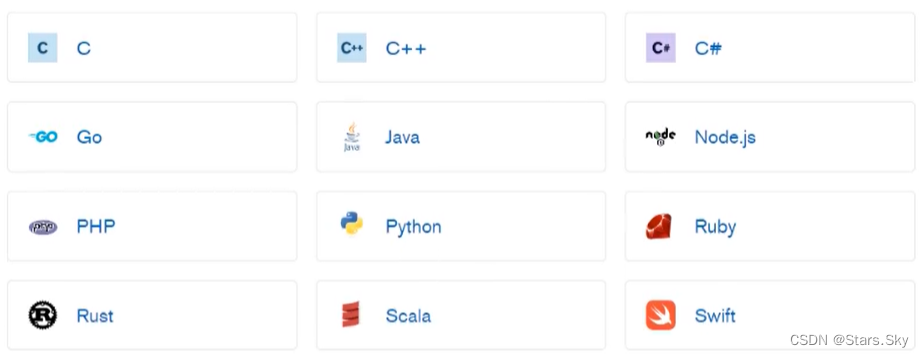 - 支持RUBY,PYTHON,JAVA,C++,PHP,C#等多种语言