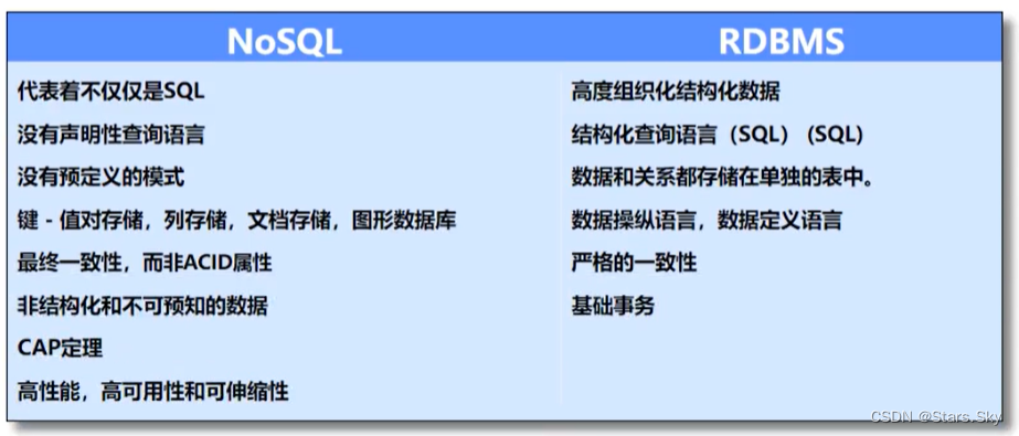 NoSOL(Not Only SOL),意思是”不仅仅是SQL”,指的是非关系型数据库,是对不同于传统的关系型数据库的数据库管理系统的统称。