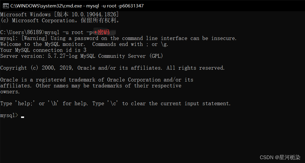 MySQLThe command line window isMySQL客户端(The default built-in commands the client):