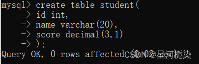 create + table + 表名 + (字段1+ 数据类型, 字段2+ 数据类型, .... 可以设置多个);
