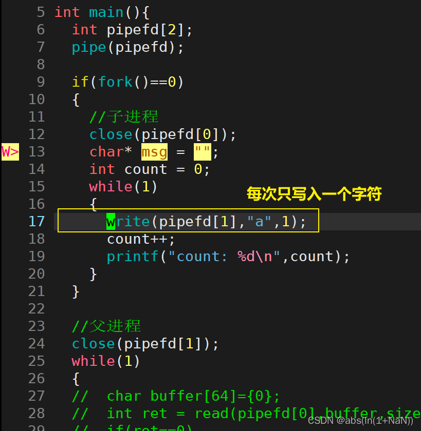 1、 Subprocess write fast , The parent process does not read ( The purpose is to test the pipe size )