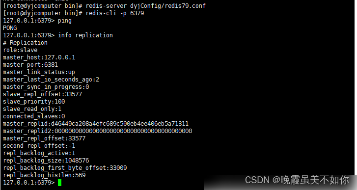 我们将老大哥主机连接试试!可以发现6379变成从机了,由大哥变为小弟!