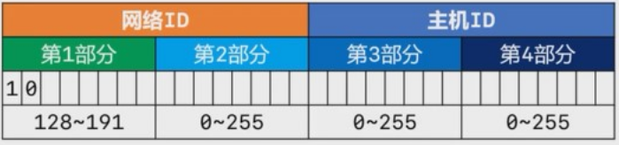 IP地址由2部分组成:网络标识(网络ID)+主机标识(主机ID)