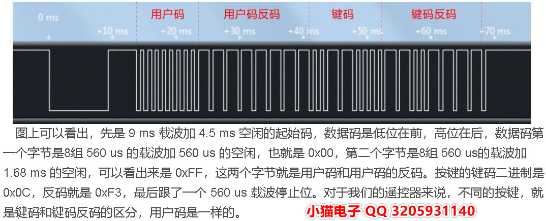 3、 Key code ,8bit Key code sum 8bit The inverse code of the key code is composed of